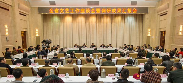 此次会议主题是学习贯彻习近平总书记在文艺工作座谈会上的重要讲话精神,交流学习体会,汇报调研成果,听取意见和建议,加快推动文化强省建设,促进全省文艺事业繁荣发展。来自全省文学、戏剧、音乐、舞蹈、美术、书法、摄影、曲艺、杂技、影视等各领域的文艺工作者代表畅所欲言、坦陈己见。?xml:namespace>