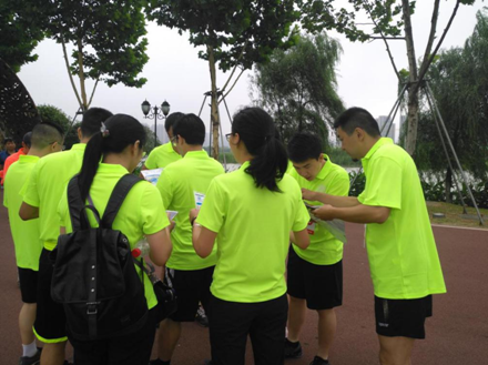 5月26日上午,天公作美,原本让大家担心的雨天很配合的“爽约”,天朗气清,和风阵阵,煞是舒爽。一大早,一众着荧光绿上衣的中南大学职工陆陆续续闪亮洋湖湿地公园,给这风清水碧的公园增添了别样的风采。信息学院部门工会也积极响应校工会号召,在副院长赵明教授的带领下派出10名队员(含2名替补队员)积极参与中南大学2018年教职工定向越野比赛。