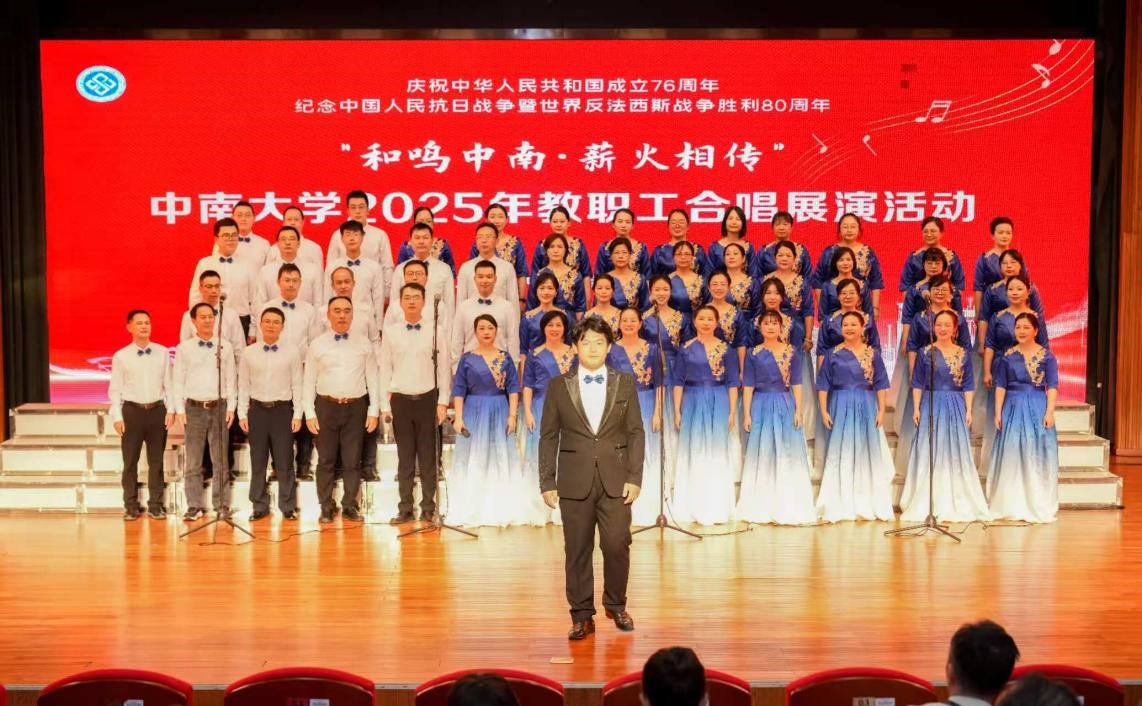 10月25日,中南大学生命科学学院合唱团在学校“和鸣中南·薪火相传”教职工合唱展演中精彩亮相,以一曲混声合唱《今天是你的生日》,用饱含深情的歌声抒发对祖国的挚爱与祝福,展现了生科院教职工积极向上的精神风貌。
