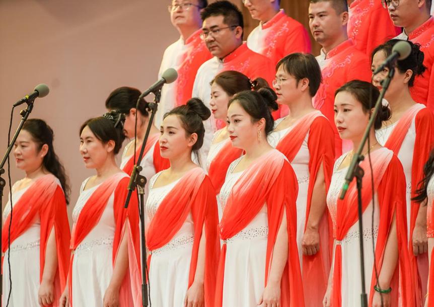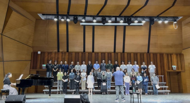 本次参演的合唱团由学院各工会小组会员自愿报名、民主推荐组建而成,涵盖教学科研、行政服务等多个岗位的教职工,最终形成以声乐和理论老师为骨干,以各系、各小组推荐老师为主体的学院合唱团。备赛期间,合唱团成员们面临着教学、科研、行政等各项工作,但大家始终以高度的责任感与使命感投入其中——白天,他们是三尺讲台上传道授业的师者、实验室里潜心钻研的学者;业余时间便化身合唱团成员,在排练室里克服时间冲突、兼顾家庭与工作的困难,反复打磨每一个音符、每一处和声。从发声技巧的校准到情感表达的统一,从指挥与伴奏的配合到舞台仪态的调整,每一个细节都凝聚着团队的汗水与心血,也彰显着建筑与艺术学院教职工团结协作、精益求精的优良作风。