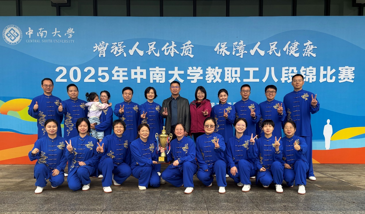 为落实全民健身国家战略,传承中华优秀传统文化,中南大学2025年教职工八段锦比赛近日在校园内圆满落幕。资生院教职工代表队在党委副书记、工会主席刘若华,院工会副主席申丽的带领下积极参赛,凭借整齐划一的动作与行云流水的演绎,以86.5分的优异成绩斩获团体赛二等奖。