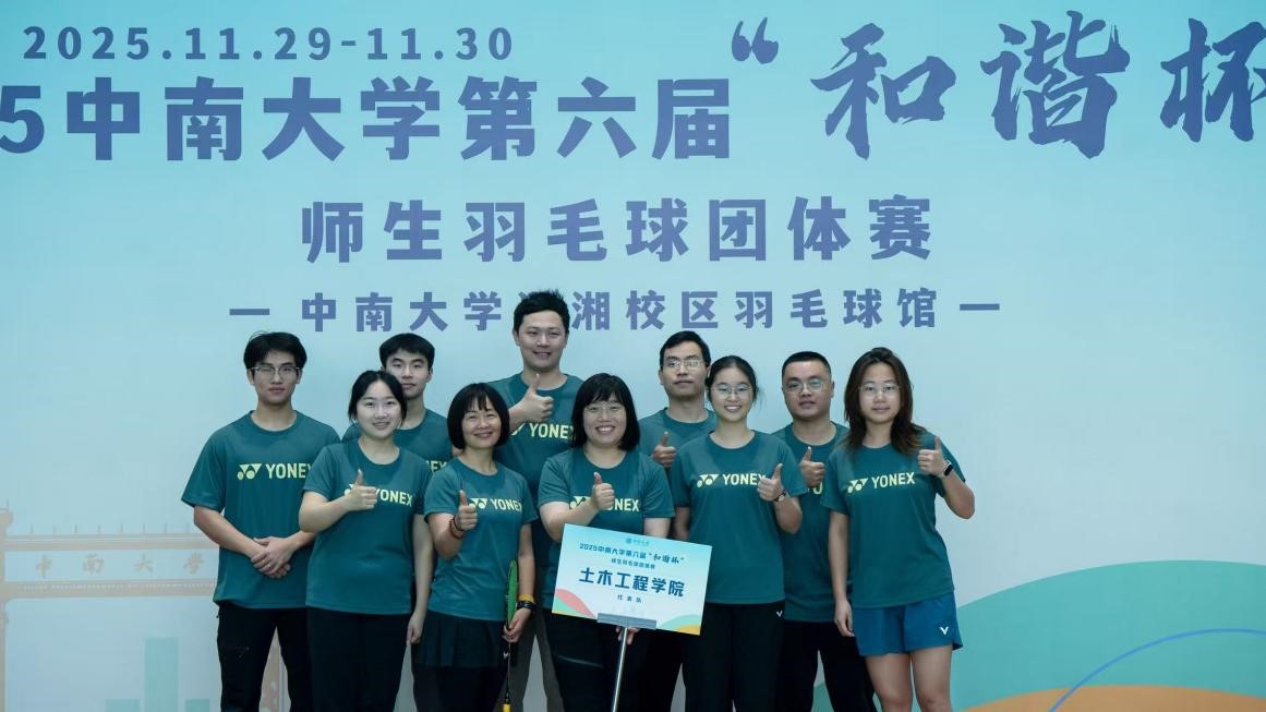 为全面落实"健康中国2030"战略部署,推动全民健身与全民健康深度融合,同时搭建师生交流互动平台、凝聚团结协作力量,11月29日,由中南大学学生工作部主办,建筑与艺术学院与体育教研部联合承办的第六届"和谐杯"师生羽毛球团体赛在气势恢宏的新校区体育馆火热开赛。本次赛事以"羽动青春·师韵同行"为主题,吸引了来自全校34个学院及机关单位的31支师生代表队、近300名选手同场竞技,土木工程学院代表队取得佳绩。