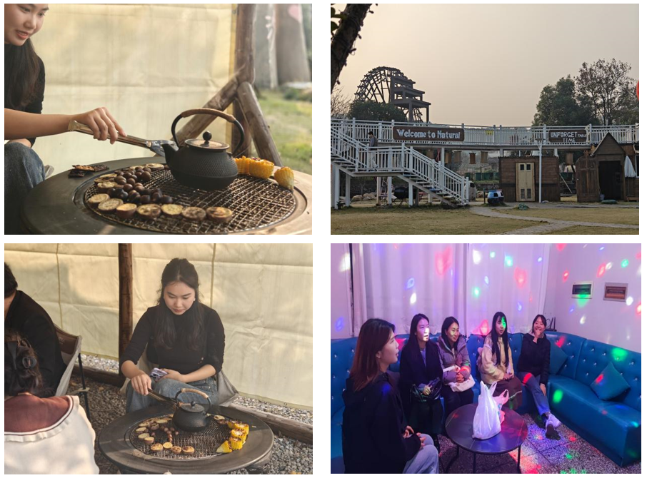 初冬的农趣谷生态庄园天清气朗、景致雅致,远离城市喧嚣的田园风光让老师们瞬间放松身心,开启了一场暖心的团建之旅。活动现场氛围感拉满!围炉煮茶区域炭火正旺,栗子、玉米、红薯等茶点整齐摆放,老师们围坐煮茶、畅谈心声,茶香伴着欢声笑语,暖意驱散了冬日寒凉。茶歇过后,集体唱歌环节点燃全场!灯光音响就绪,流行金曲、怀旧老歌轮番上演,独唱、合唱精彩不断,教职工歌声、掌声交织,充分展现了老师们积极向上的精神风貌。