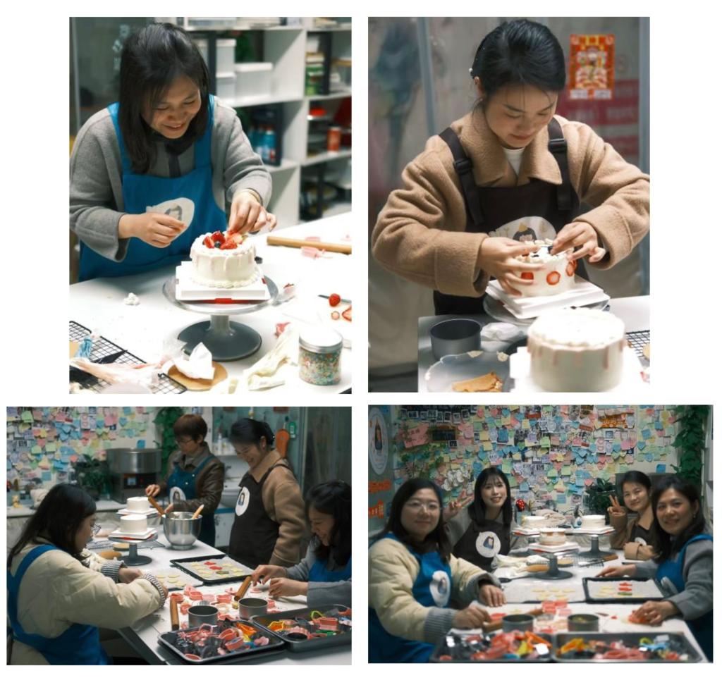 活动现场,大家分组协作,有的专注于蛋糕胚的塑形,仔细将奶油抹平;有的发挥创意,用水果和装饰点缀出别致图案;还有的精心制作造型饼干,从压模到烘烤,每一步都一丝不苟。平日里奔波于隐患排查、应急处置一线的她们,此刻沉浸在烘焙的乐趣中,现场欢声笑语不断,气氛温馨融洽。